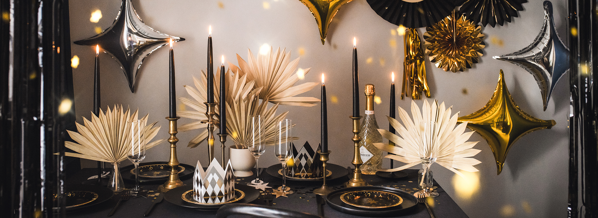 Посрещнете 2025 с изящество и стил! Изберете декорации в злато, сребро и черно, които ще внесат празничен блясък и елегантност във вашия дом. Завършете визията с перфектно подредена маса – тематични аксесоари за сервиране, блестящи салфетки и изискани акценти, които ще превърнат празничната вечеря в незабравимо преживяване. Нека блясъкът бъде главният герой на вашата Нова година!