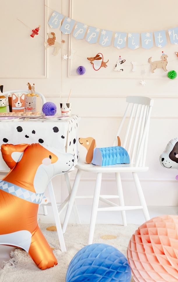 Тези уникални хартиени декорации с форма на кученца са перфектно допълнение към детски партита, тематични събития или като забавна украса за дома.