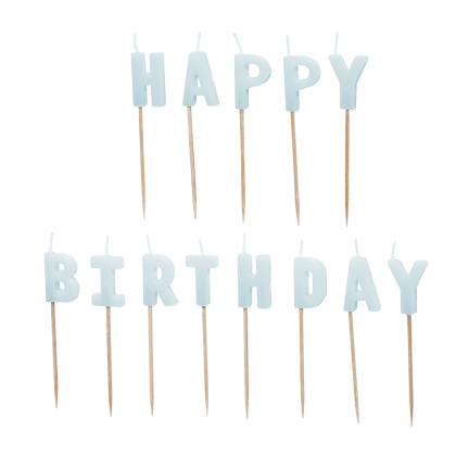 Украсете празничната торта с тези свещички за торта, изписващи HAPPY BIRTHDAY и придаващи завършен вид дори и на най-семплата торта. С техния светлосин цвят и изчистен дизайн, те са стилен детайл, който добавя настроение и ясно послание.