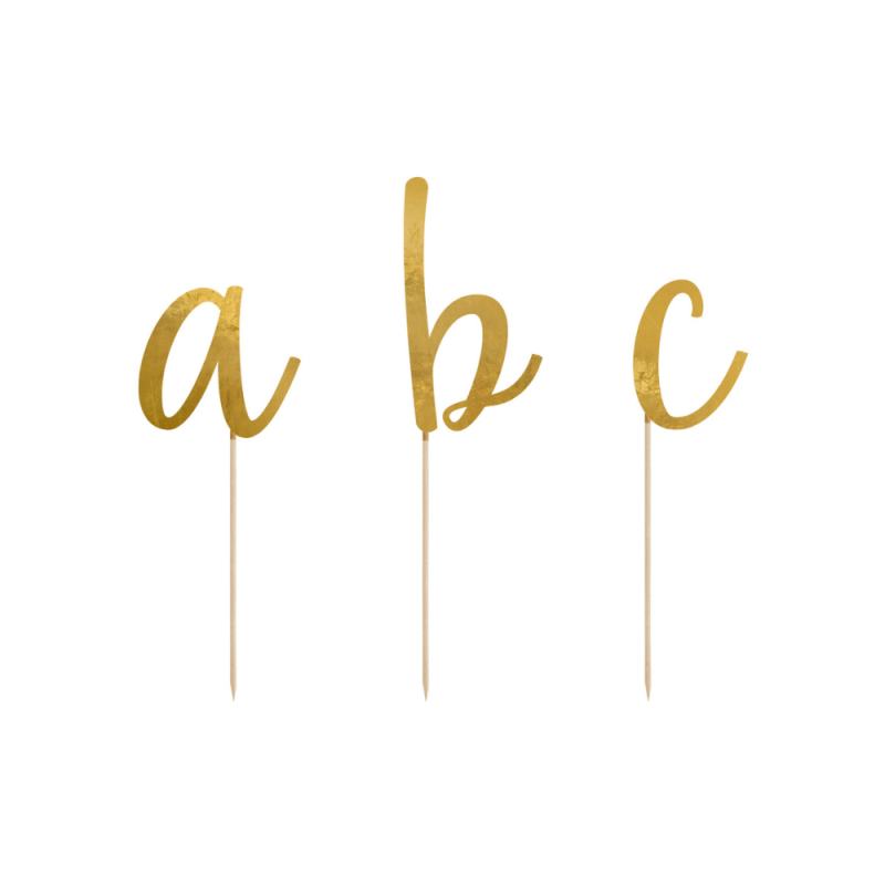 Направете тортата истински уникална с топери за торта във формата на златни букви. Благодарение на целия комплект от пълната латиница (a–z) можете да изписвате имена, послания или специални думи според повода – рожден ден, кръщене, baby shower или годишнина.
