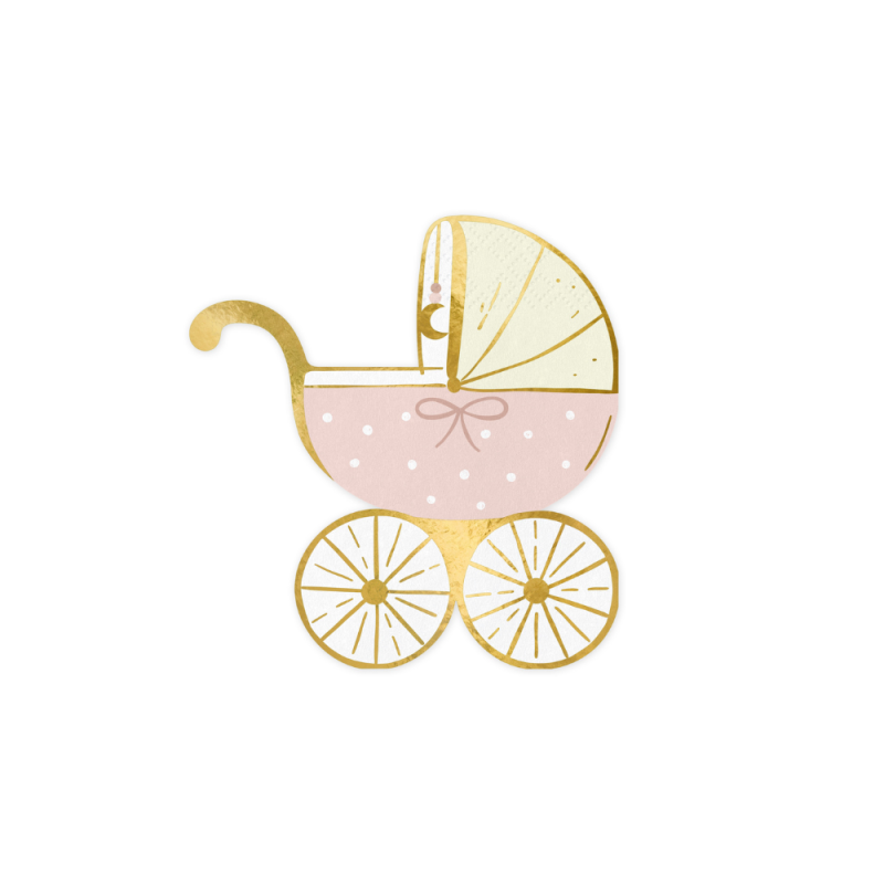 Добавете изискан детайл към празничната маса с тези хартиени салфетки във форма на бебешка количка. Те са перфектно допълнение за посрещане на бебе, baby shower или бебешка погача, като създават нежна и тематична атмосфера.