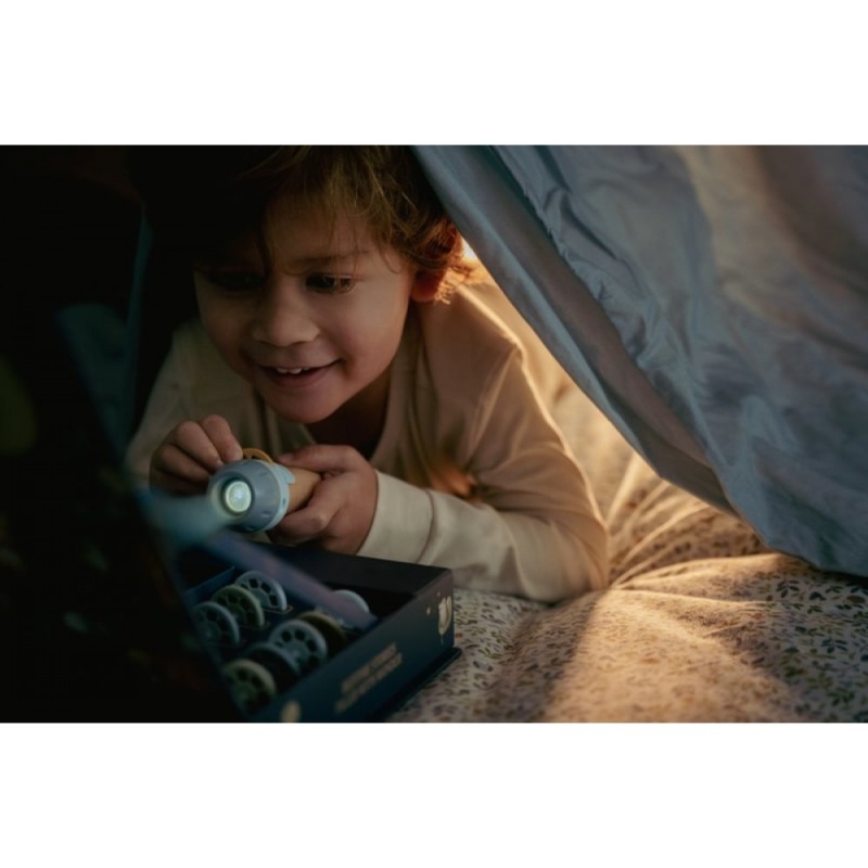 Потопете се в света на приказките с проекционното фенерче Bedtime Stories от Little Dutch! Всяка вечер може да се превърне в истинско приключение с 12 различни истории, разказани чрез красиви илюстрации, които се прожектират на стената. В комплекта има и малки книжки, които съответстват на всяка история – за още по-вълшебно изживяване.