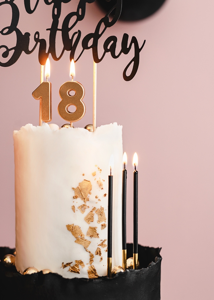 Стилни, изискани и модерни – тези черни свещи са идеалният завършек на всяка елегантна торта. Те се съчетават прекрасно със златни, сребърни или пастелни акценти и придават неповторим луксозен ефект на празничната торта. Перфектен избор за 18-ти рожден ден, юбилей и всяко празненство с блясък и класа.