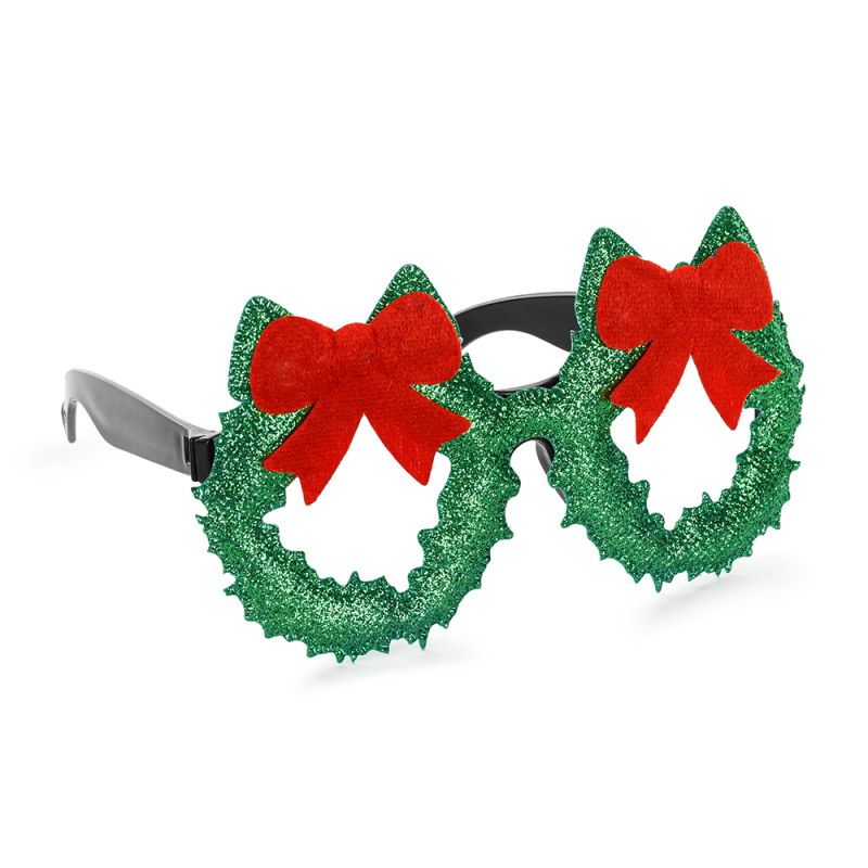Направете коледните снимки още по-забавни с тези блестящи очила във форма на празничен венец. Зелената брокатена рамка и ярките червени панделки създават идеален акцент за фотоси, семейни видеа и празнични игри. Леки, удобни и достатъчно стабилни, за да издържат през цялото тържество.