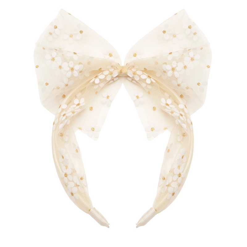 Тази нежна диадема за момиче е създадена, за да добави фин акцент и приказно усещане към всяка детска визия. Ефирната тюлена панделка, декорирана с деликатни маргаритки, придава лекота и романтичен чар, без да натежава или да дразни косата.
