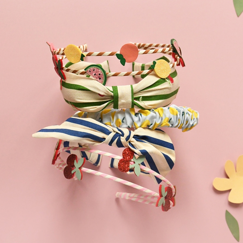 Добавете свеж акцент към всяка прическа с тази очарователна детска диадема с черешки, която носи настроение, цвят и усмивки още от първия поглед. Меката райе текстилна основа в нежно зелено е украсена с малки черешки, които придават игрив и стилен завършек на всяка детска визия.