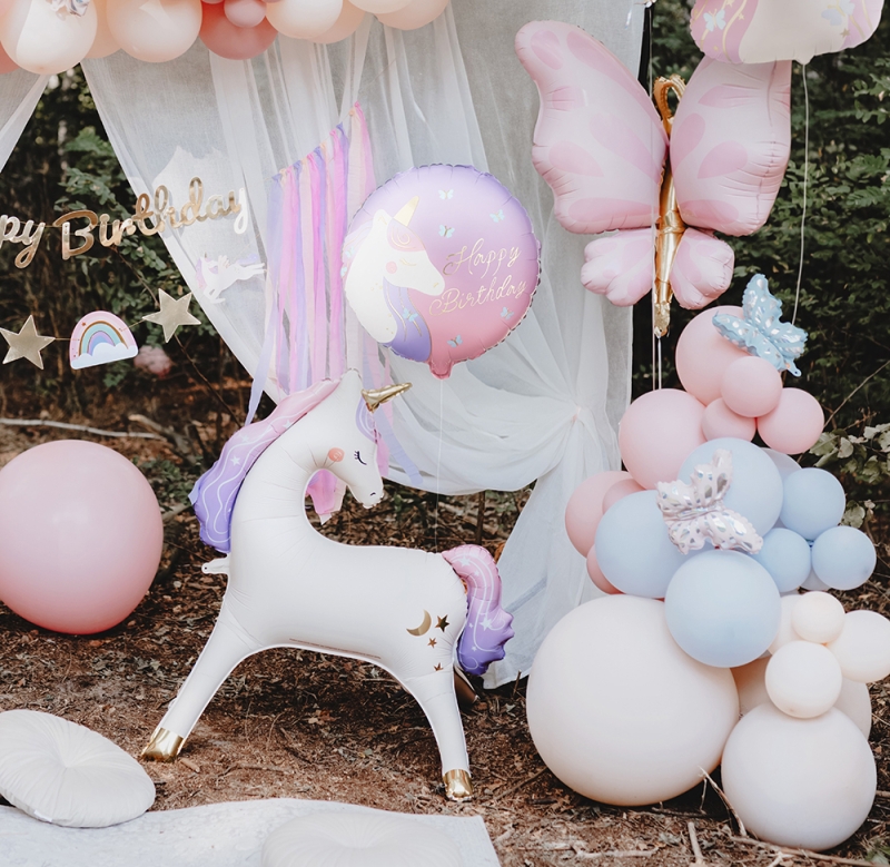Момичетата обожават еднорозите – защото те носят мечти, нежност и малко приказна магия. Този фолио балон Happy Birthday с еднорог е създаден точно за такива моменти – когато искате празникът да изглежда вълшебен още от първия поглед. Нежните лавандулови и светлорозови тонове, съчетани със златния надпис, създават красива и мека визия, подходяща за детски рожден ден, изпълнен с усмивки.