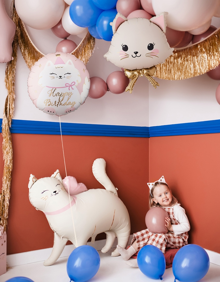 Деликатният кремав цвят, нежните розови акценти и златната панделка придават усещане за изисканост и мекота. Този балон коте е перфектен както като самостоятелен акцент, така и като част от балонена арка, декорация за сладка маса или фотокът.