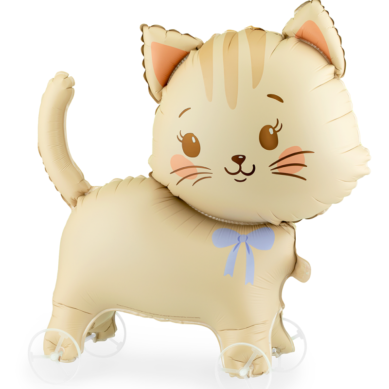 Зарадвайте малките гости с този очарователен фолиев балон Коте на колела, който носи движение, усмивки и истинско парти настроение. С нежния си бежов цвят, сладко изражение и деликатна панделка, той е перфектен акцент за детски празник.