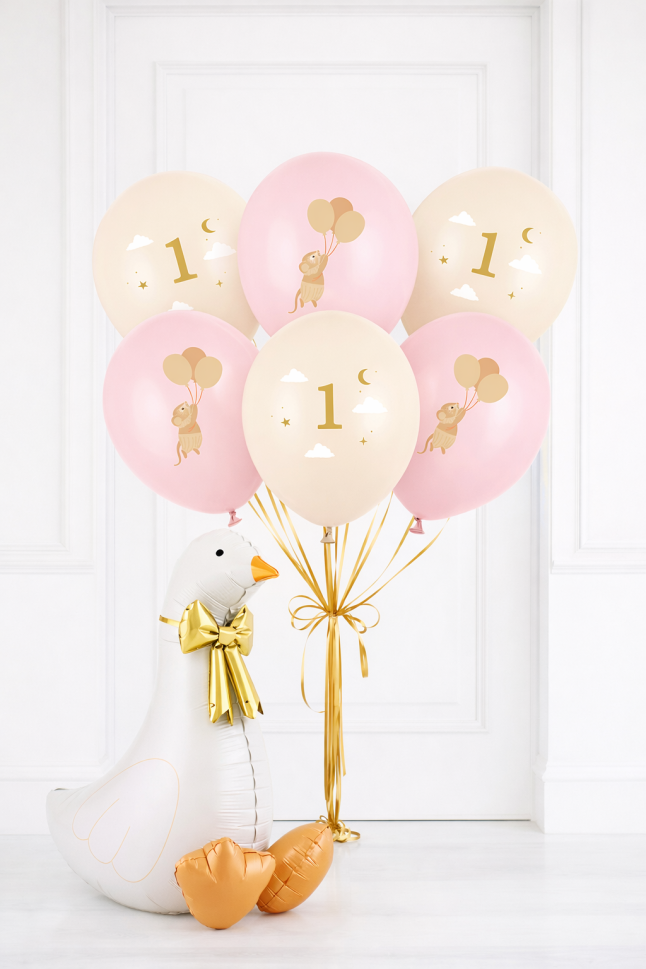 Отбележете първата годинка с нежност и стил с този комплект латексови балони с мишка държаща балони.