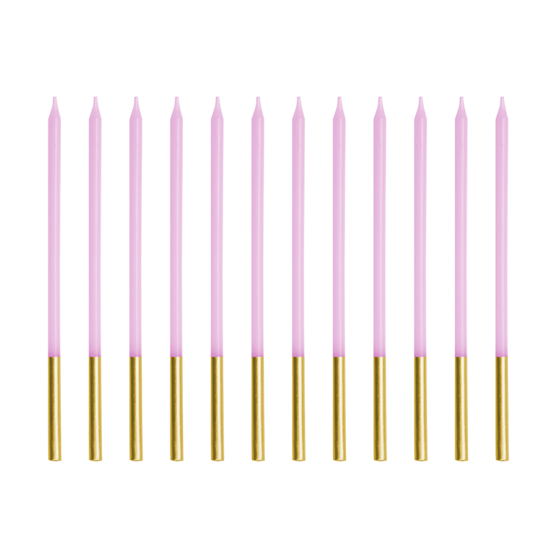 Създайте стилен и елегантен завършек на тортата с тези дълги лилави свещички със златна основа. Те ще придават височина и изразителност на всяка торта. Комбинацията от нежен лилав цвят и фин златен акцент ги прави изключително подходящи за модерни и изискани празненства.